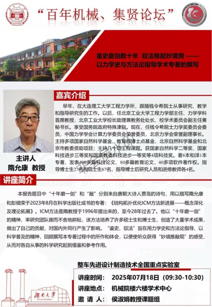 “百年机械、名家论坛”——隋允康