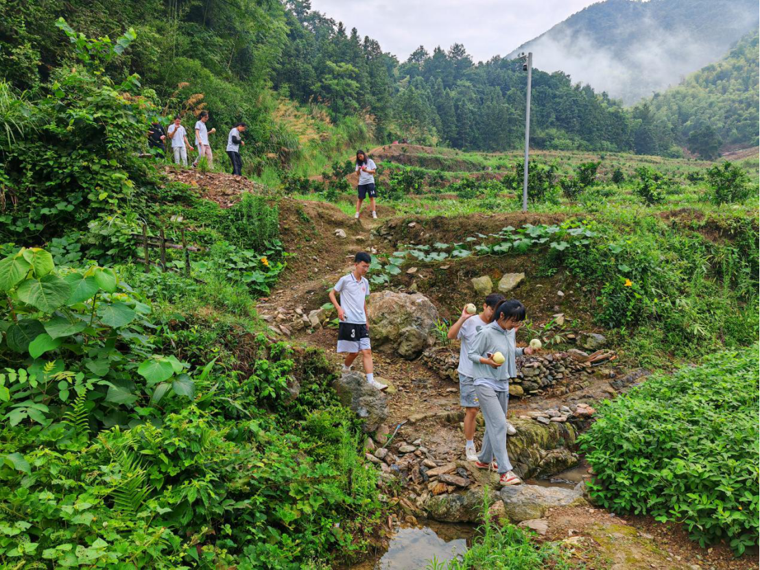 7月15日早,金鸡村村支书吴文彬带领机载寻梦志愿团前往金鸡村集体经济——果园进行参观。同行途中,吴支书为团队详细讲解了从果园创建的经历到将来工作开展的计划。为壮大金鸡村集体经济,村委多次召开会议,以因地制宜、发挥自身优势为原则,找准高质量项目;以发展当地特色、提高居民平均收入为愿景,建设占地面积近一百亩的金鸡村果园。