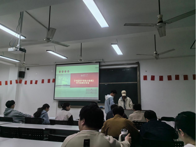 为扎实推进党纪学习教育,深入学习贯彻《中国共产党纪律处分条例》,引导全体党员学纪、知纪、明纪、守纪,机械院研究生党支部以廉洁自律为主题、以《中国共产党纪律处分条例》为学习资料开展主题党日学习。