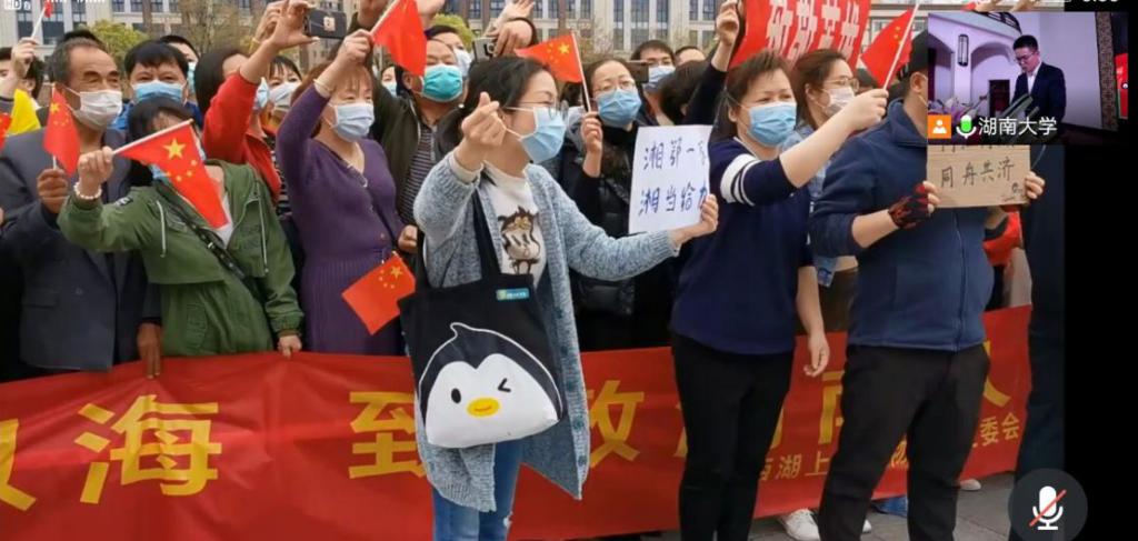 会上,主持人介绍了几位校友在疫情期间奋战于各行各业最前线的英姿,用一个个故事打动了在场的各位师生。一位从事记者行业的校友在疫情期间不惧被病毒感染的风险,深入病房,深入患者,深入医疗人员之中,以镜头记录下抗疫众生相。他看到有老人难以忍受隔离带来的孤独,像孩子一样让护士陪他聊天,他看到有医护人员脱下厚重的防护服后,才惊觉衣物早已被汗水打湿。他以独特的视角记录下了疫情下的无助与希望,病房里的痛苦与奉献。固然,他也畏惧病毒,担心家人朋友,但正是他那种职业精神与家国情怀所包含的大无畏,为全民抗疫这段难以忘怀的艰难历史的记录作出了不可磨灭的贡献。另一位负责火神山项目建设的校友在那段艰苦时光中,时时刻刻与同事们战斗在基建第一线。由于恰逢春节,当时留在武汉的工友不多,加紧建设任务便越发刻苦,以至于一旦有人需要帮忙,其他许多工友——即使刚刚坐下休息——也会起身相助。作为统筹规划的负责人,这位校友为了保障工程在武汉多雨的情况下顺利完成,通过多种途径联系材料商,为工地搭建了大雨棚,大大加快了施工进度。他为工程加速贡献的每一分力,都为苦苦等待床位的患者们增加了一线生机。他与在工地上流汗的工人朋友们一样,是为抗疫有着伟大贡献的逆行者。校友们的感人故事不仅感染了在场的师生们,也让身处分会场的同学们感受到了岳麓子弟在国难面前的一片赤诚之心。欧美女优