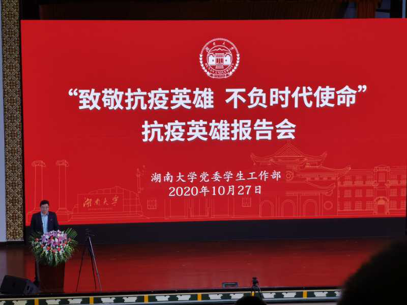 大礼堂召开了题为“致敬抗疫英雄,不负时代使命”的抗疫英雄报告会。