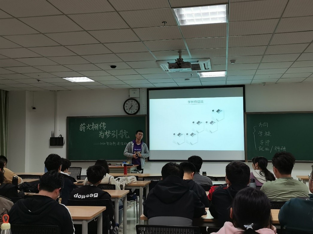 本科2018级智能制造班保研分享会在研究生楼A208教室顺利召开。机自本科2017级部分学长学姐和机自本科2018级的智能制造班全体同学参加了本次分享会。
