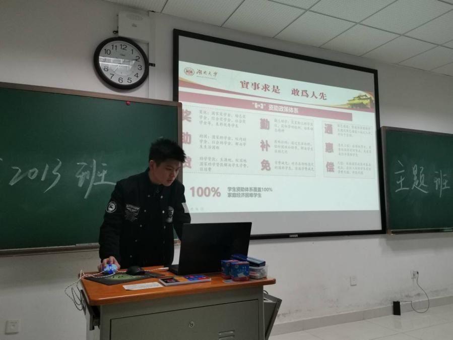 接下来,班长先讲解了我校学生资助政策的具体内容,将“6+3”资助政策体系展示给同学们研读。通过这部分介绍让大家明白了欧美女优