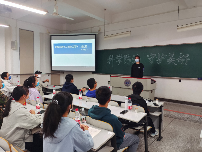同时,主持人还邀请到了疫情期间的志愿者,能源2101班的刘奕君同学,来讲解她在疫情期间的心得体会。刘奕君同学提到:“我们都是这场疫情成功抵御背后的贡献者,都诠释着中国青年独有的价值担当。”除此之外,刘奕君同学还表示:“希望大家能从我的经历里得到经验,积极了解各类传染病,学习相关防疫知识,面对传染病时不要害怕,时刻都不能放松。”