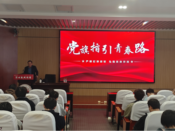 党委副书记周加喜老师为积极分子们讲授名为《严明纪律规矩,弘扬优良作风》的专题党课。周加喜老师围绕中国共产党的组织、纪律和作风及时政专题,借助丰富的视频和文字资料,清晰、详细地解读了党的纪律要求与优良作风,同时带领同学们深入了解时政热点,鼓励大家以高标准、严要求对待自身,积极向党组织靠拢。