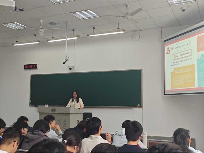 辅导员王玉迪老师为积极分子讲授题为《牢记义务权利,争做先锋模范》的专题党课。王玉迪老师详细解读了共产党员的义务与权利,引导积极分子深化责任意识和行权规范,认真履行党员的义务,正确行使党员的权利,并要求积极分子从思想、行动上对标党员标准,立足岗位,牢记为民初心。同时,王玉迪老师还介绍了入党条件及入党积极分子发展程序,并认真地讲解了党员的基本条件,希望积极分子以此为目标,不断向党组织靠拢。
