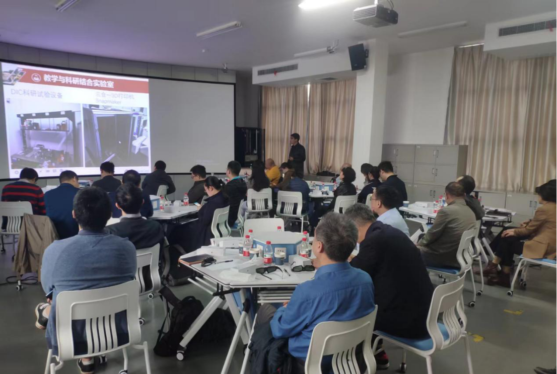 首先,示范中心进行了3D虚仿实验演示,让老师们体验了3D虚仿实验的沉浸式视觉效果,同时向大家介绍了示范中心虚拟仿真实验的建设历程和建设成果。示范中心目前开发了10余个虚仿实验;其中,2个实验获批湖南省省级虚拟仿真实验项目,3个实验上线“高等学校机械工程学科虚拟仿真实验共享平台”,得到了数十所高校的使用,共享效果良好。然后,示范中心各实验室负责人做了工作汇报,介绍了近几年示范中心以及各实验室的发展建设情况和未来几年的建设规划。
