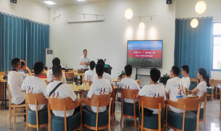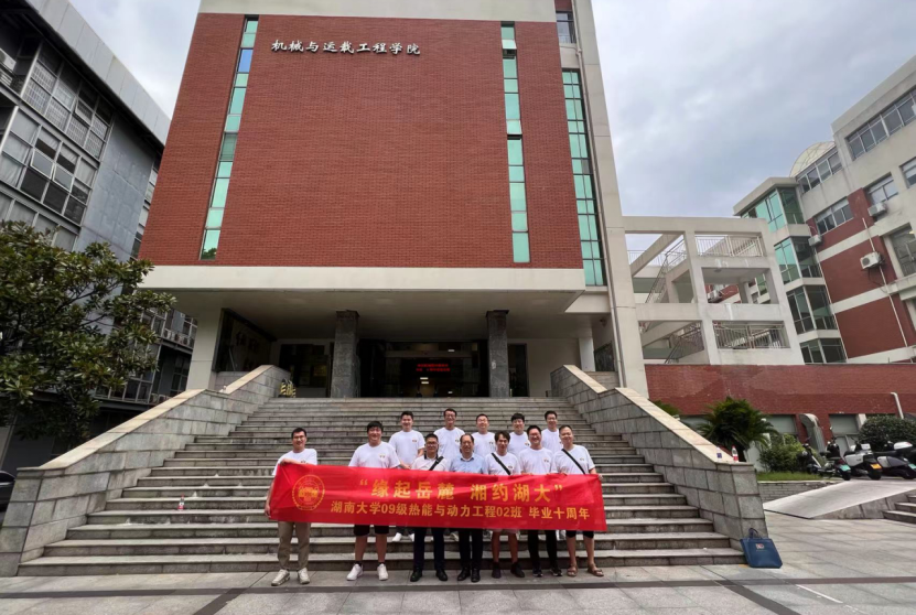 机械院能动09级热能二班校友于7月15日回访母校,共同回忆起在湖大度过的难忘大学时光。他们身着定制的十年能动文化衫,带来了浓厚的校园回忆。